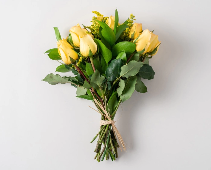 Surpreenda seu amor com esse presente especial da Bete Flores. São 15 Rosas Amarelas, envolvidas em Ruscus, Tango e acabamento em ráfia; acompanha uma garrafa de vinho tinto – deixando tudo mais romântico!